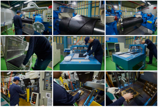 前川化学では金型設計・製造から原料配合、混練、成形、仕上げまで自社で一貫して行える体制を整えています。自社設備でゴムを練り上げるため、お客様の要求特性に合わせたオーダーメイド配合も可能です。他では難しい特殊ゴム材料(シリコン、フッ素ゴム等)についてもお気軽にご相談ください。