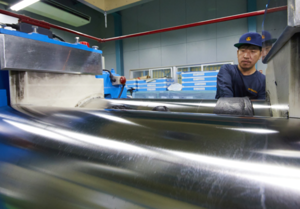 加硫されたゴム製品は熱いうち柔らかいため、所定の形状を保ったまま冷却させます。水冷や空冷で温度を下げ、十分に硬化したら引取装置で製品を引っ張り出します。長尺品はそのままロールに巻き取ったりコンベアで排出します。