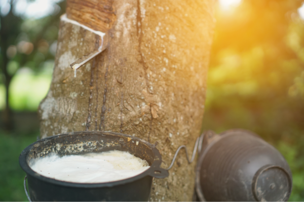 ラテックスは液状の天然ゴムで、凝固しないように安定化させたものです。ディッピング(浸漬)で成形する手袋や風船、接着剤のベース材など、液状であることを活かす用途で使われます。