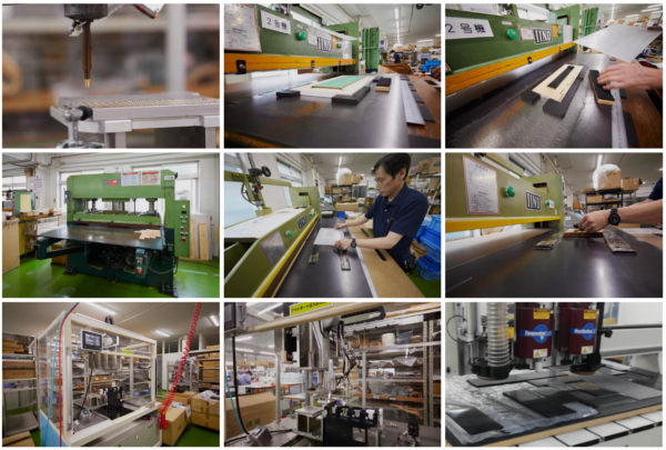 金型の設計・製造から、原材料選定、配合、練り、成形まで全工程に対応。さらに真空成形機などの設備と、品質保証部による管理体制で、品質の再現性を重視したものづくりを行います。